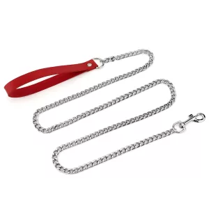 Alloy hondenriem met leren handvat