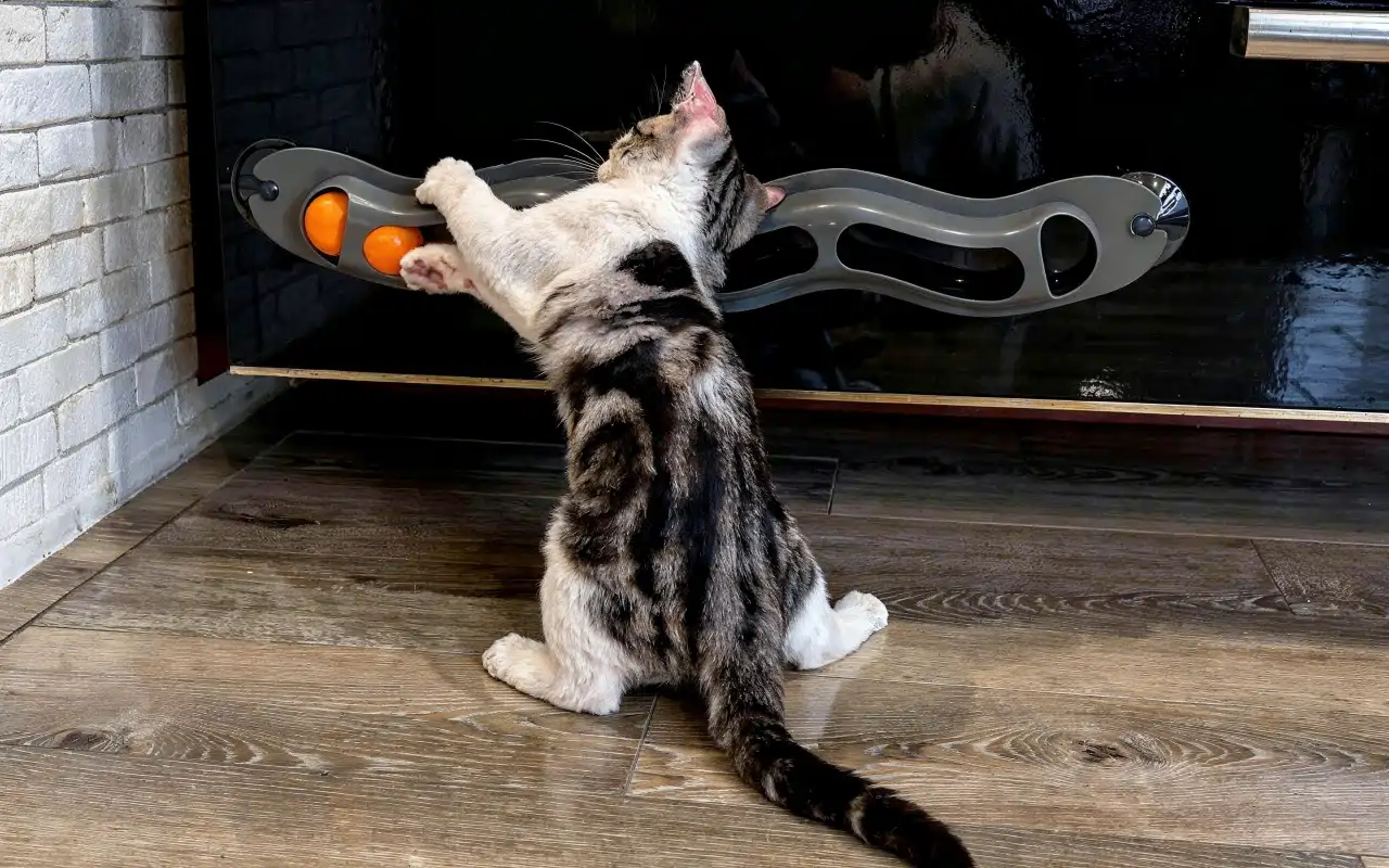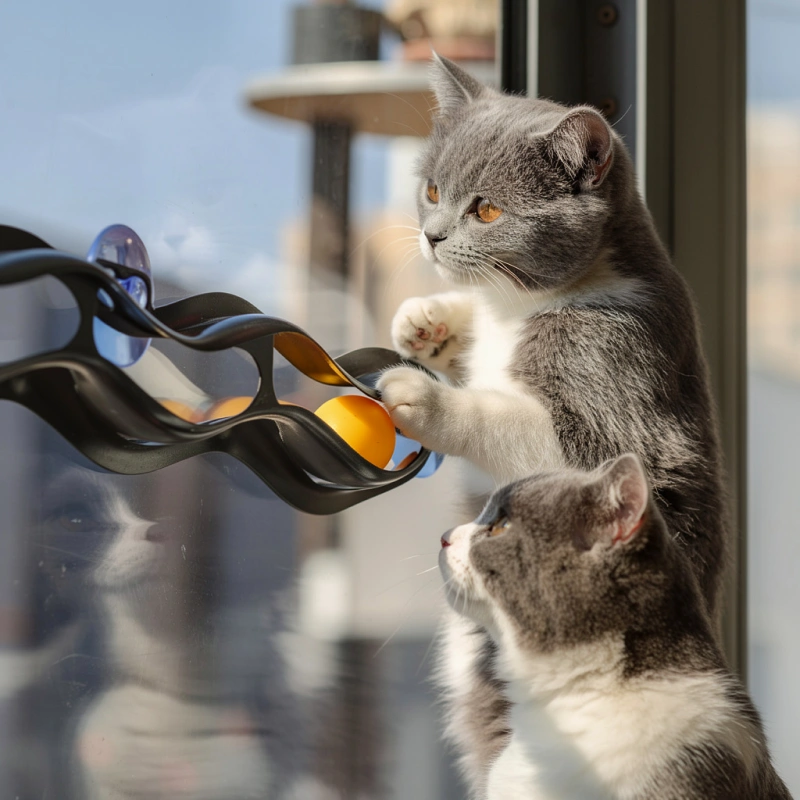 Bevestig het aan glas, tegels of gelakt staal voor netjes speelplezier. Houd de vloer vrij terwijl je huisdier urenlang geniet van plezier.