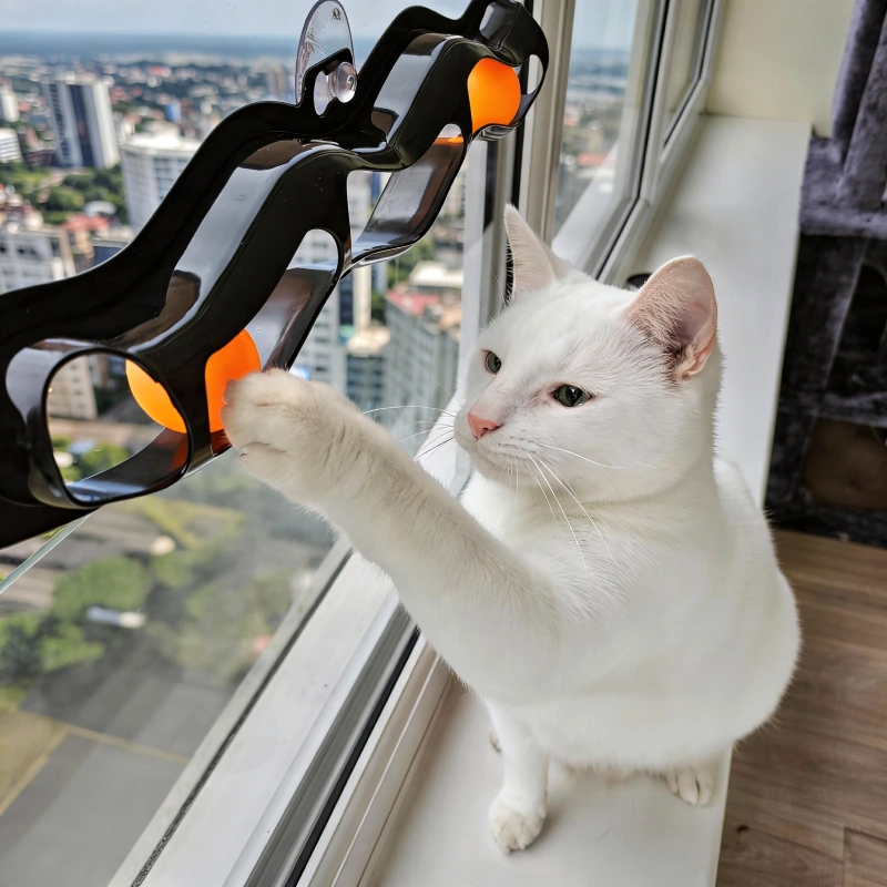 Eerlijk gezegd het beste speelgoed voor mijn luie oude kat. Hij beweegt nu eindelijk! De zuignappen houden supergoed vast en hij gooit nu geen spullen meer van tafel.