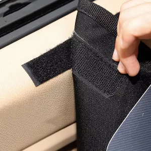 De PrimDog deurbeschermer wordt geleverd met zelfklevende klittenbandstickers die eenvoudig kunnen worden aangebracht. Ze houden de hoes op zijn plaats, ongeacht de impact.