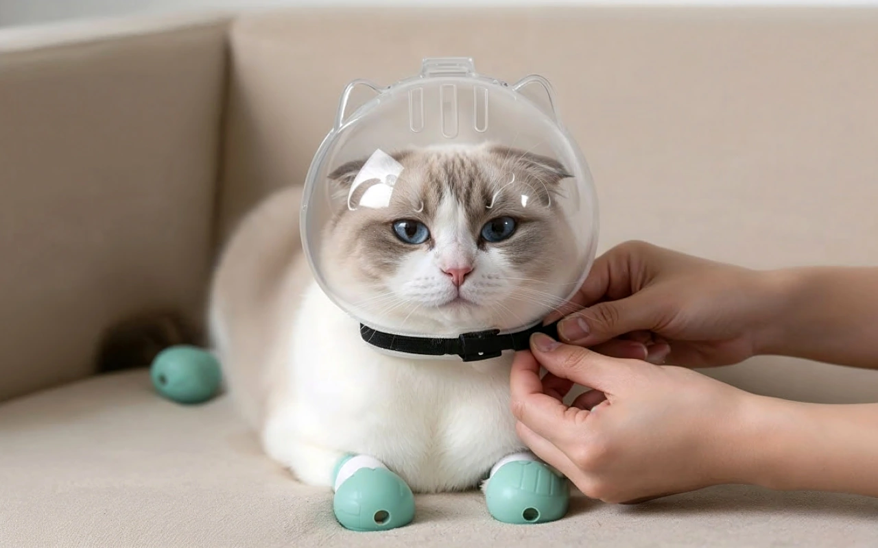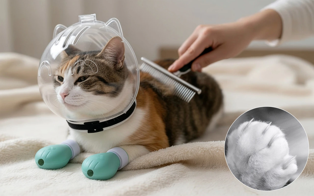 Katten Anti-Bijt Verzorgingsmuilkorf Pootbeschermers Anti-Krab Schoentjes