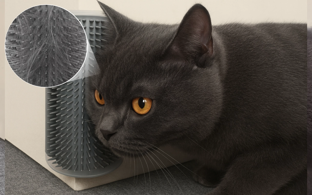 Deze hoekborstel past goed in mijn woonkamer. Mijn kat geniet van de massagetijd en ons huis ziet er nu netter uit. Echt een aanrader!