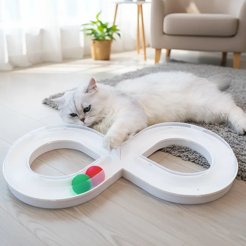 Onze oudere kat is levendiger geworden door het bewegingsspel. Ze tikt de ballen weg en kijkt urenlang naar hoe ze draaien zonder zich te vervelen.