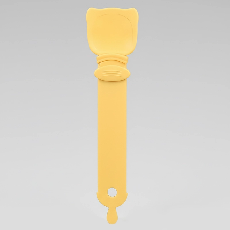 Geweldig hulpmiddel voor onze kieskeurige eter. Het handvat is lang genoeg om krassen te voorkomen en ik kan het supersnel afwassen.