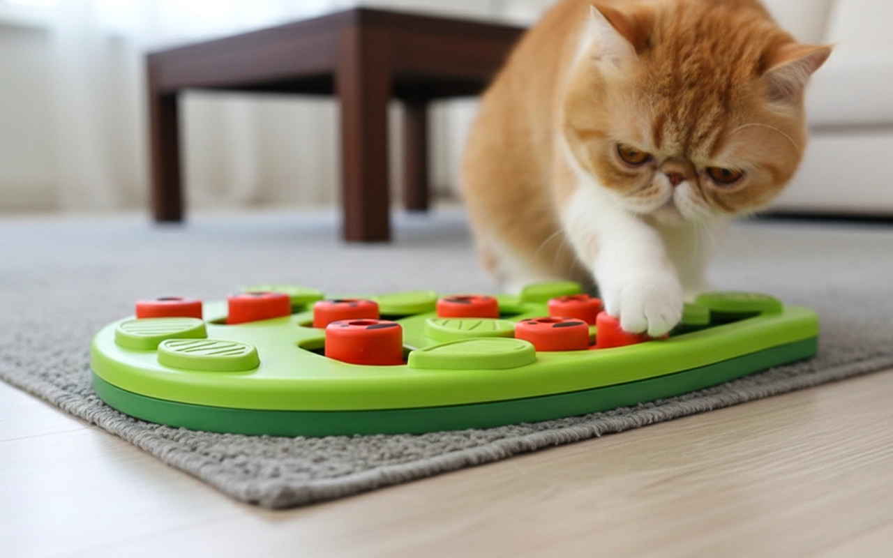 Mijn twee cyperse katten zijn nog nooit zo actief geweest tijdens snacktijd. De voeder laat ze werken voor hun traktaties en ze lijken er slimmer van te worden.