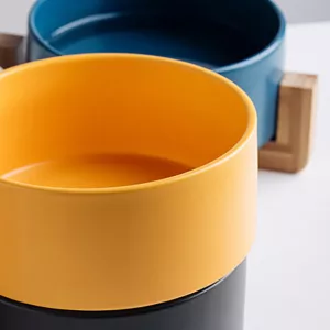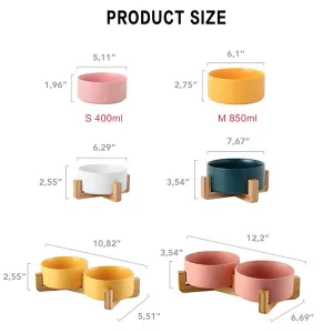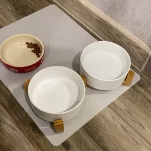 De kom en het standaard zijn gemaakt van milieuvriendelijk, voedselveilig, duurzaam keramiek en bamboemateriaal dat zeer gemakkelijk schoon te maken is. Verkrijgbaar in verschillende aangename matte kleuren: wit, groen, grijs, geel en roze. Deze kommen zijn zo helder en duidelijk van kleur dat u ze snel kunt vinden, zelfs als uw hond ze verstopt.