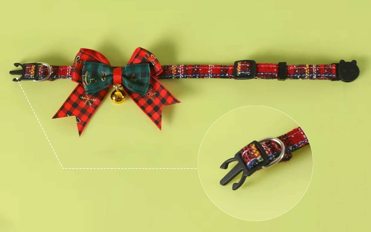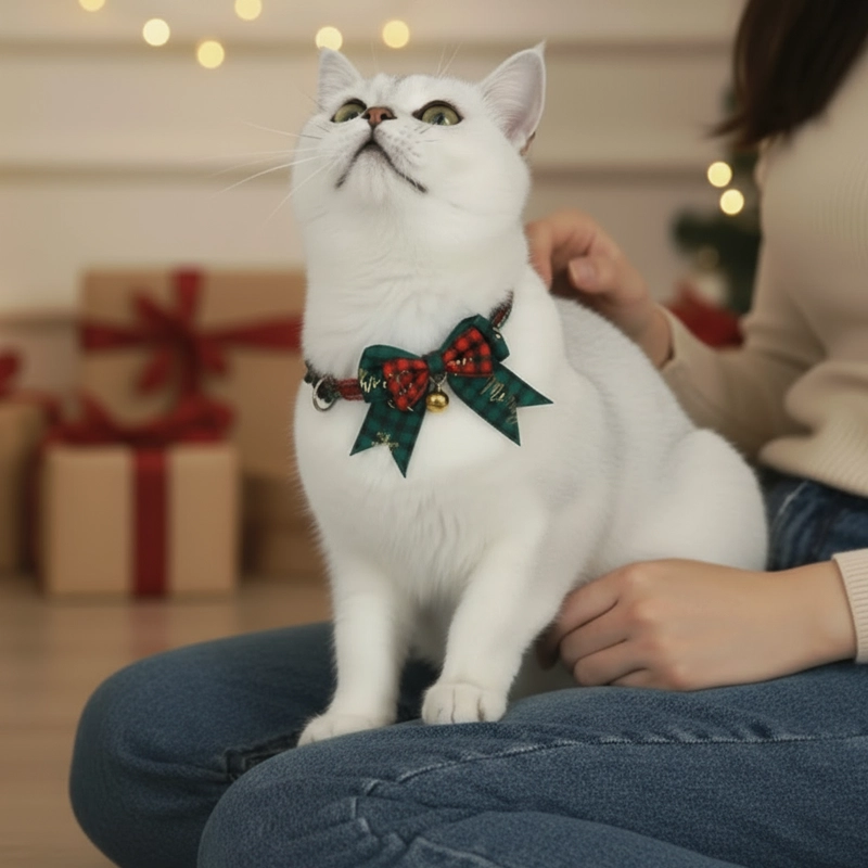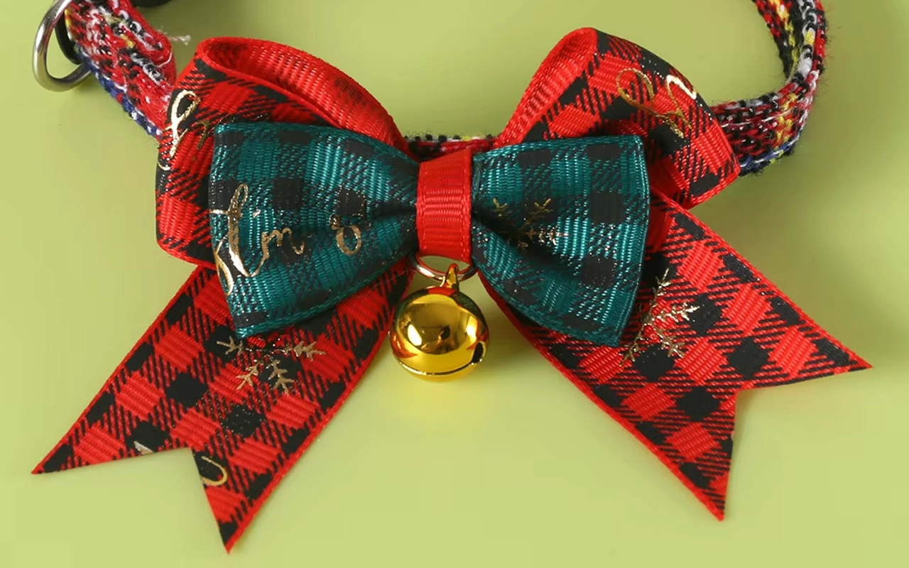 Mijn kat ziet er extra schattig uit deze kerst met haar nieuwe strik! Het geruite patroon is super leuk en het gouden belletje rinkelt als ze rondrent.