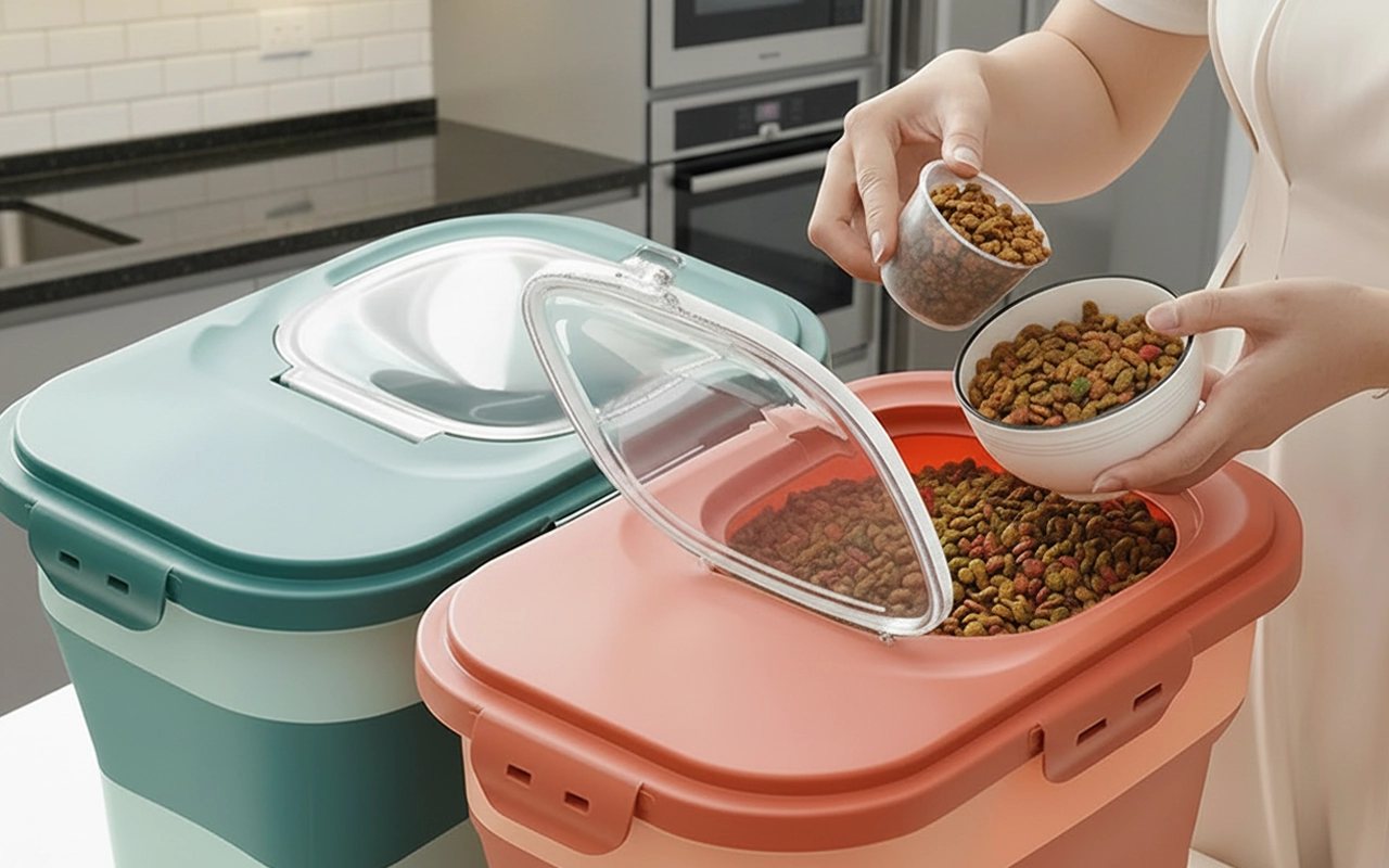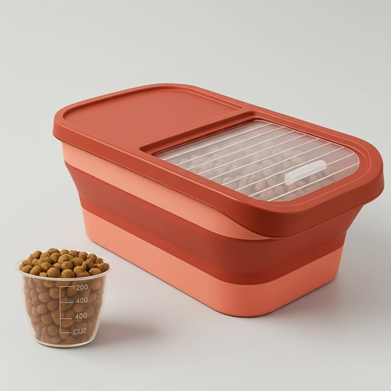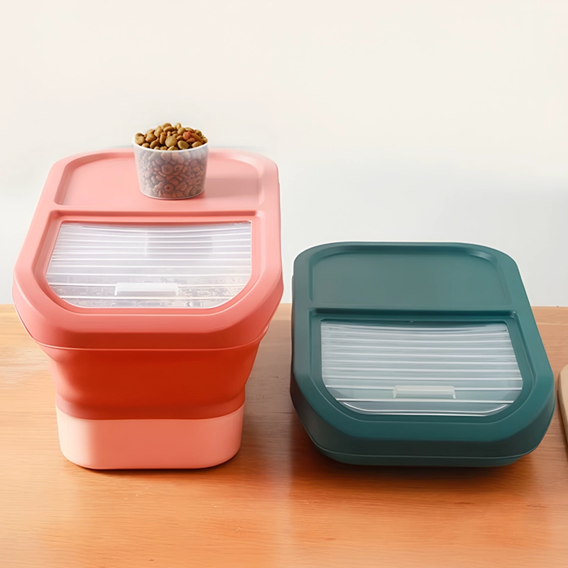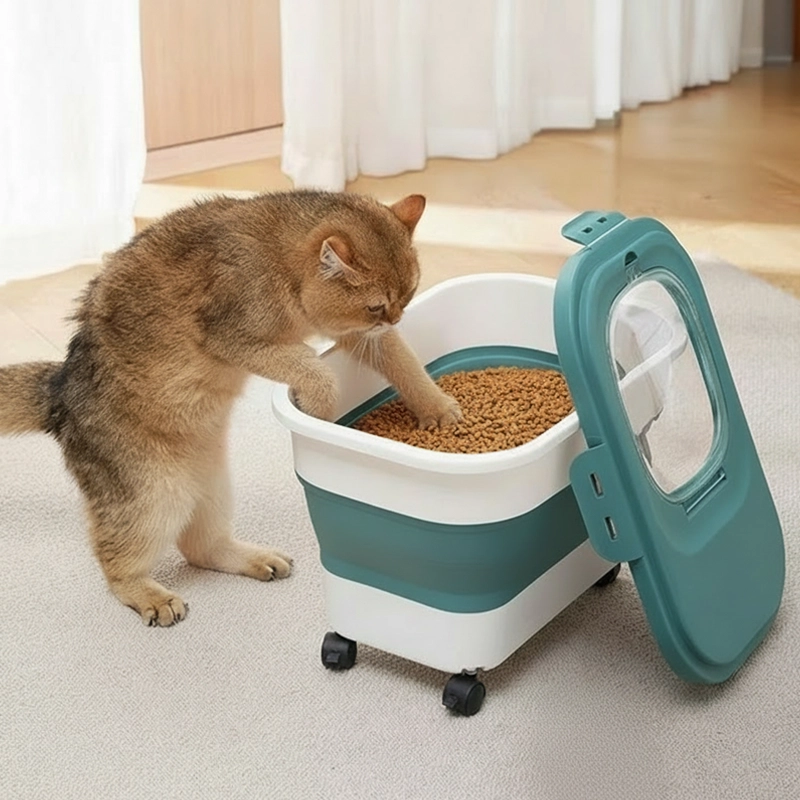 Voer blijft knapperig en droog, zodat huisdieren van elke maaltijd genieten. Slank ontwerp past perfect in hoeken, waardoor jouw ruimte altijd netjes blijft. Eenvoudig te verplaatsen dankzij soepel rollende wieltjes eronder. Door de transparante bovenkant kun je het voer zien zonder het deksel op te tillen.