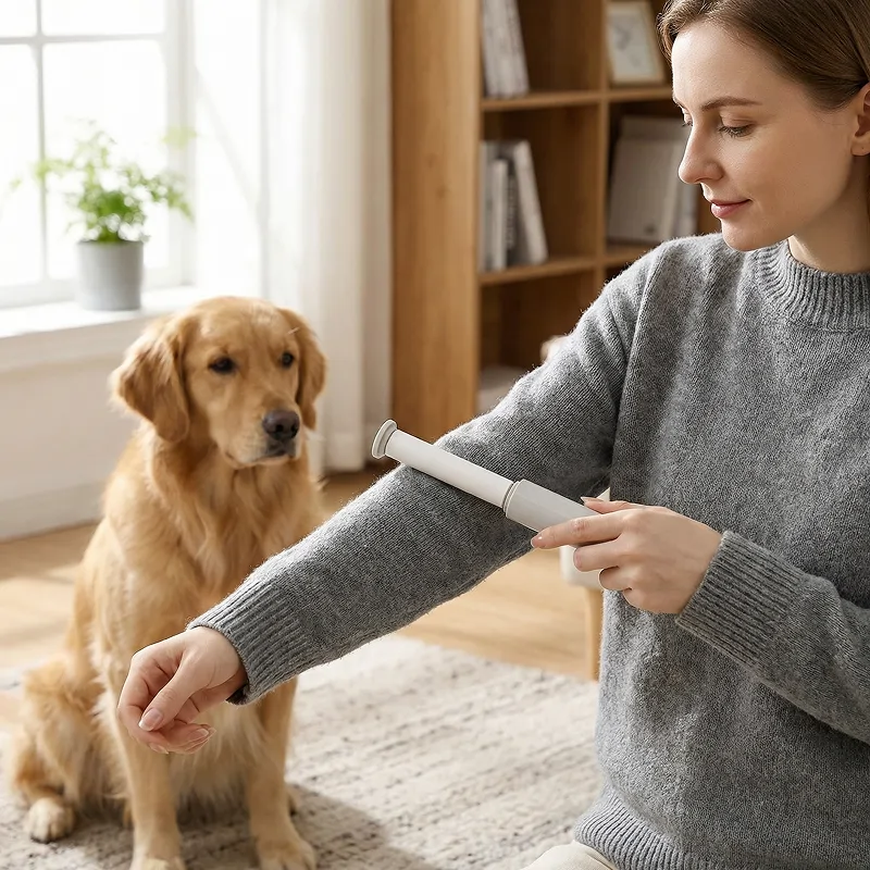 Deze kleine pluizenroller is een redder in nood tijdens de lunchpauze. Ik heb altijd hondenharen op mijn shirt, maar nu kan ik ze in seconden verwijderen. Super handig!