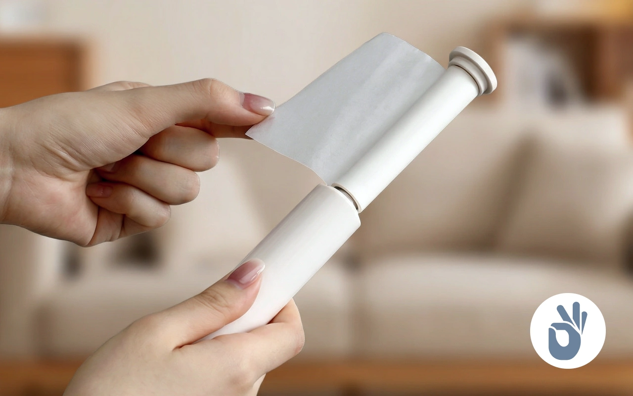 De Primdog roller neemt vuil op zonder lijmresten achter te laten. Elke laag scheurt netjes af, zodat je handen schoon blijven.