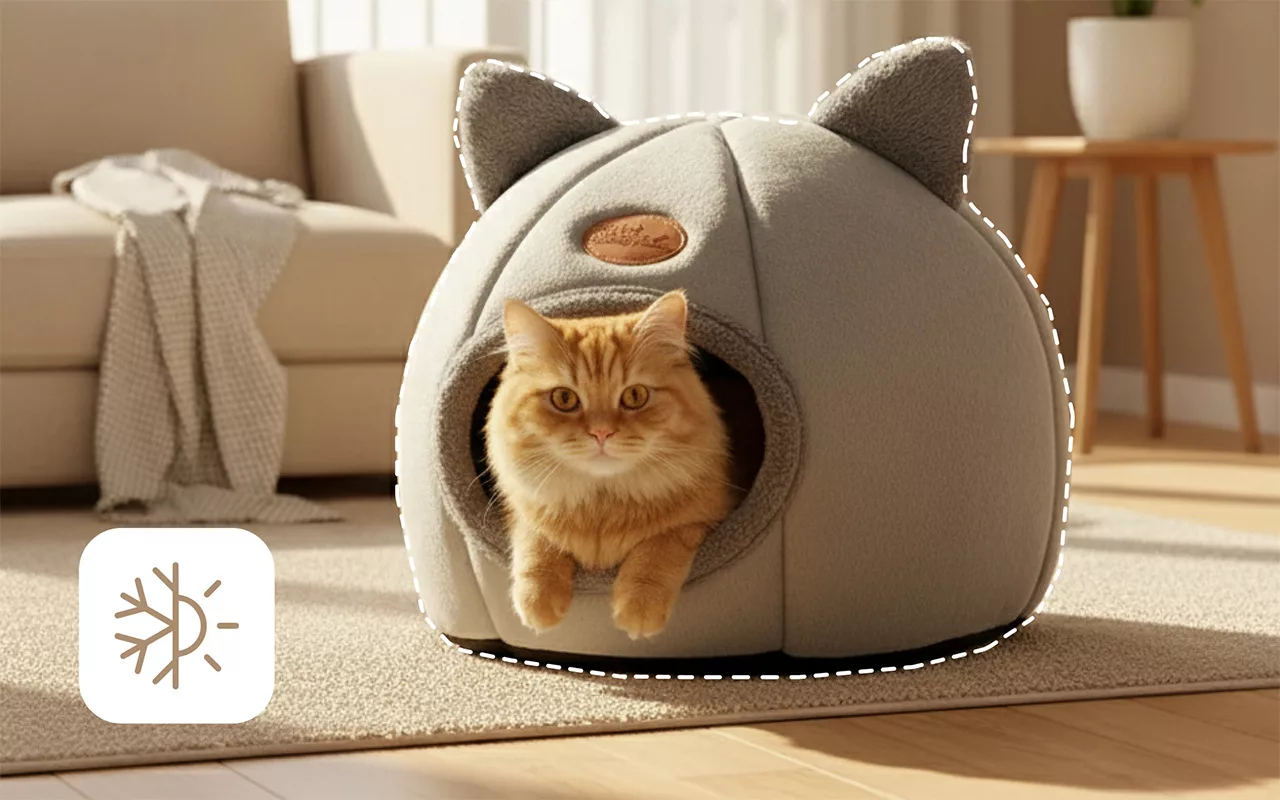 Het kussen binnenin blijft comfortabel bij koud of warm weer. kat kan makkelijk ontspannen zonder het koud of te warm te krijgen.