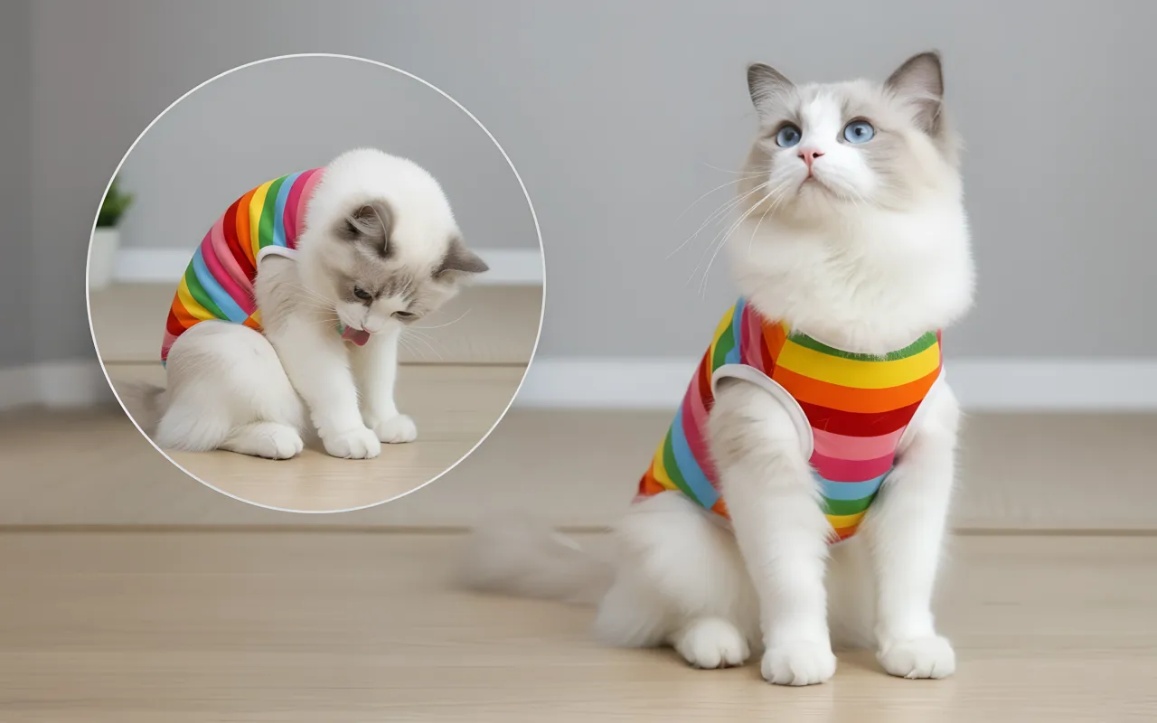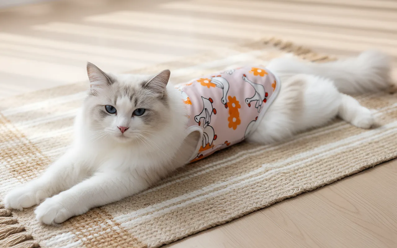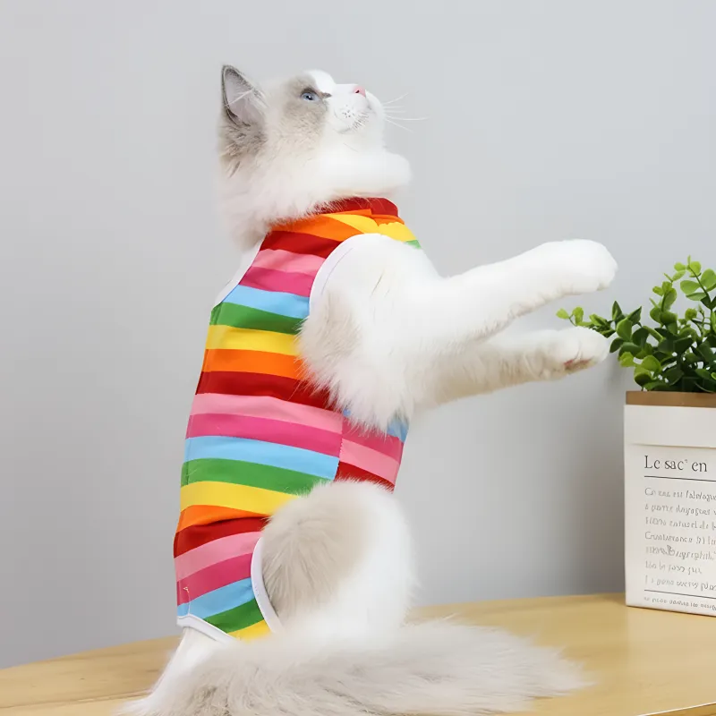 Primdog kattensterilisatiepak beschermt wonden tegen likken of bijten. Het sluit nauw aan, zodat bewegen natuurlijk blijft tijdens het herstel.