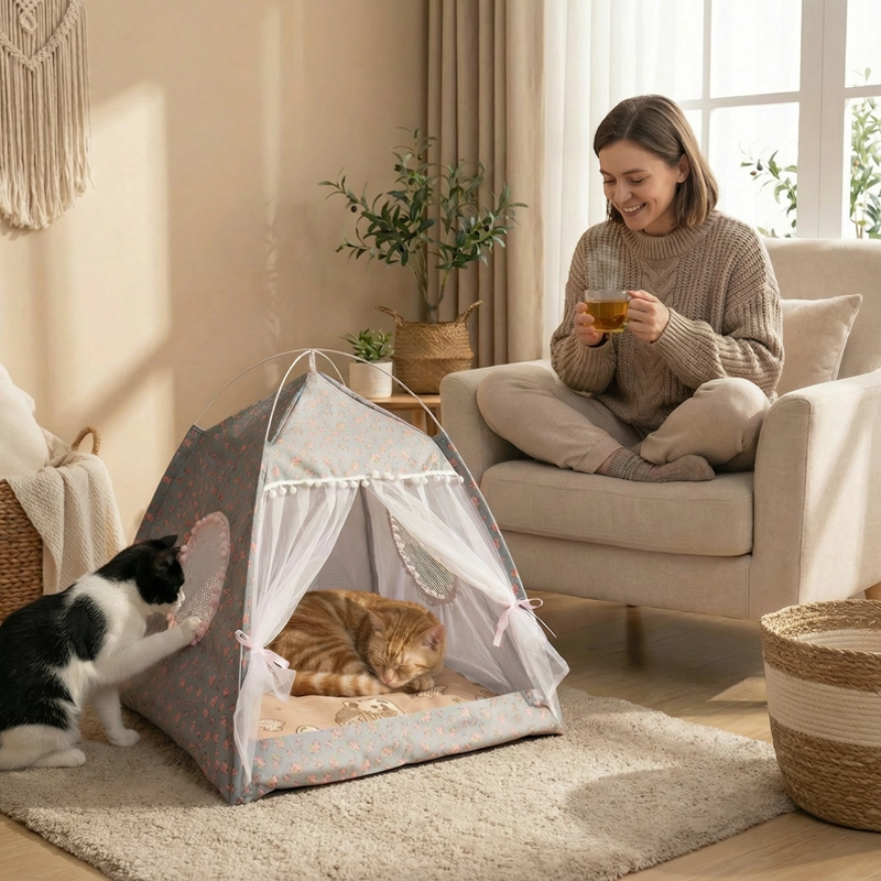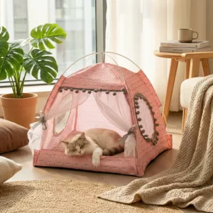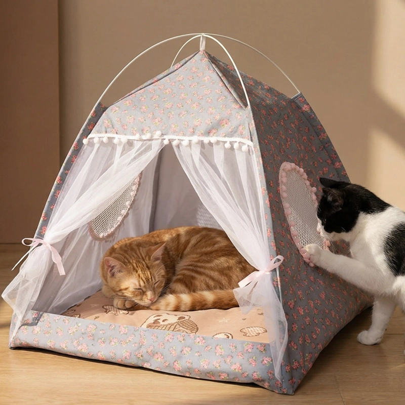 Geef je huisdier een knusse plek die als thuis voelt. De Primdog kattentent biedt comfort voor elk seizoen. Luchtige gaaszijdes laten briesjes gemakkelijk door. Zachte stof en speels ontwerp fleuren elke kamer direct op.