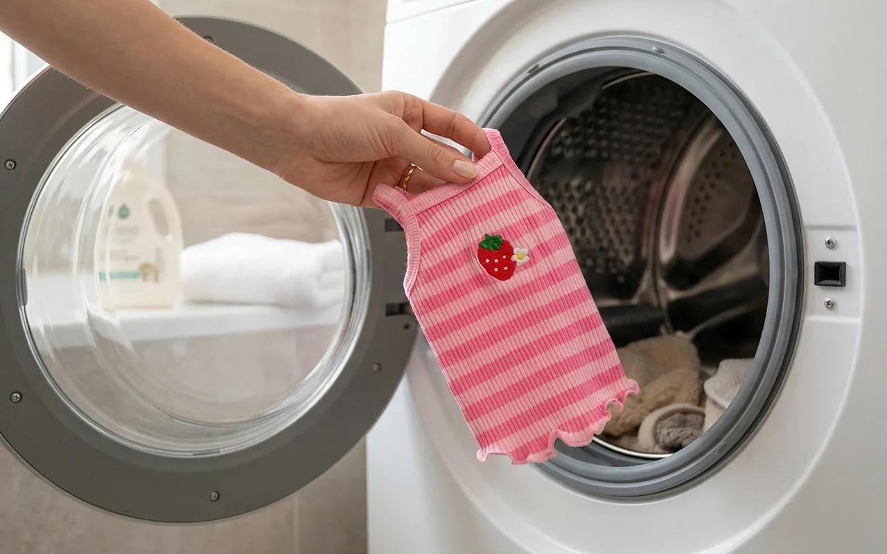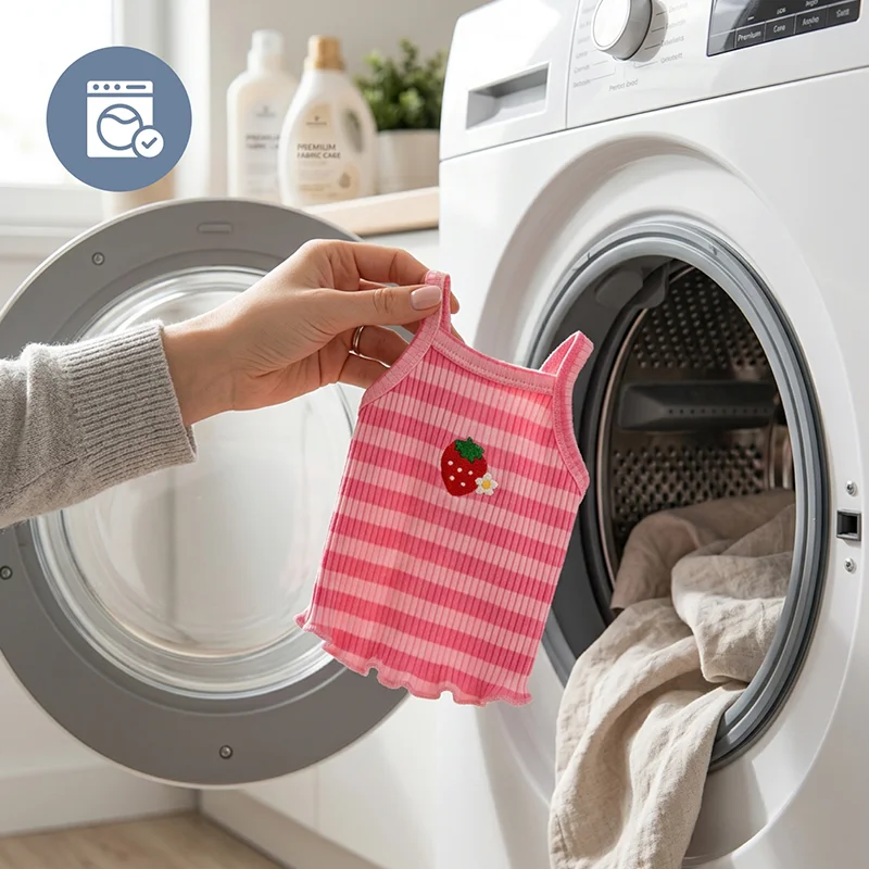 Machinewasbaar materiaal maakt het wekelijks reinigen eenvoudig. Kleuren blijven helder en de stof blijft mooi na het wassen.