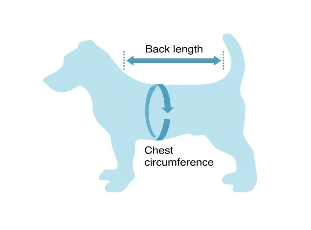 - 1. Meet de ruglengte van je huisdier vanaf de basis van de nek tot aan de staart.