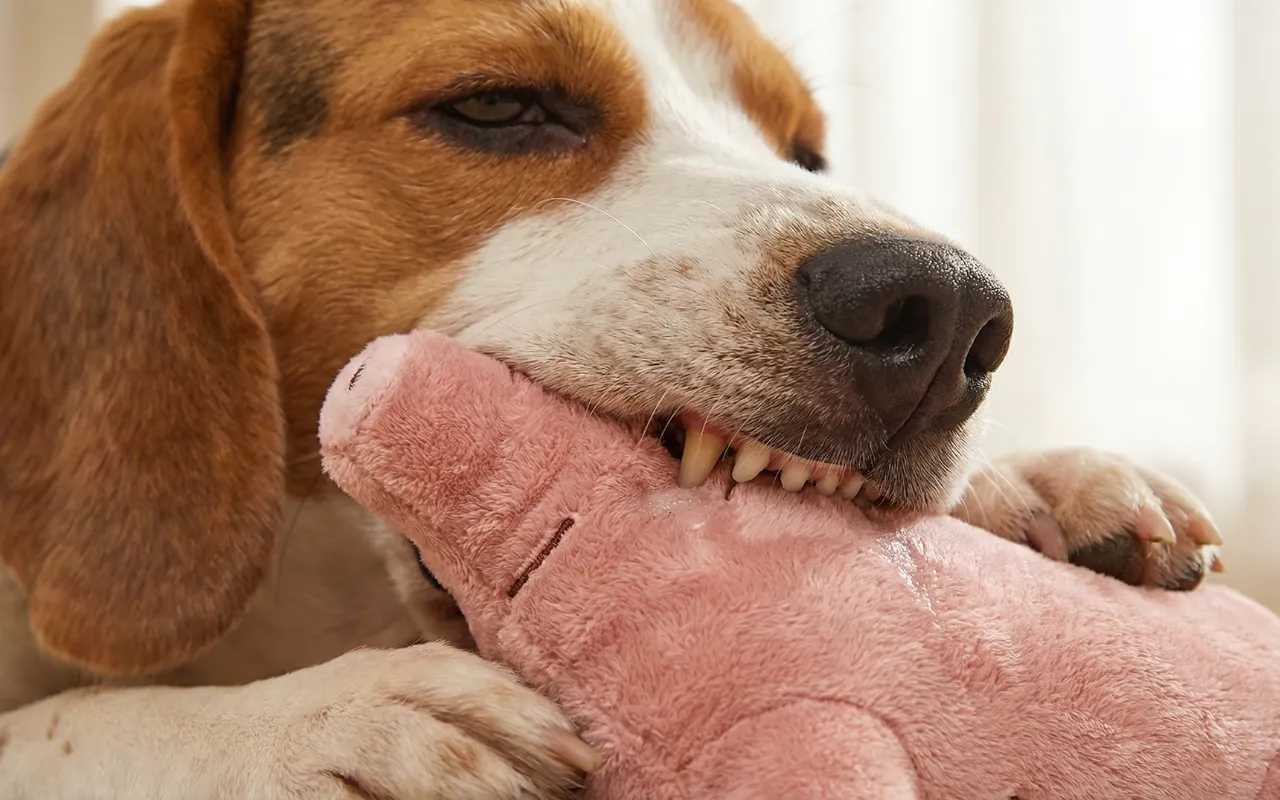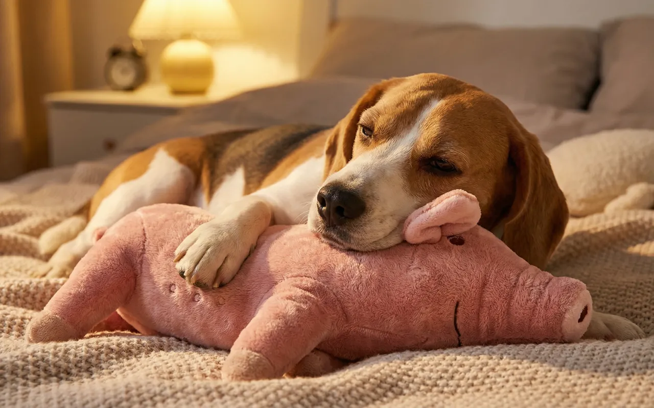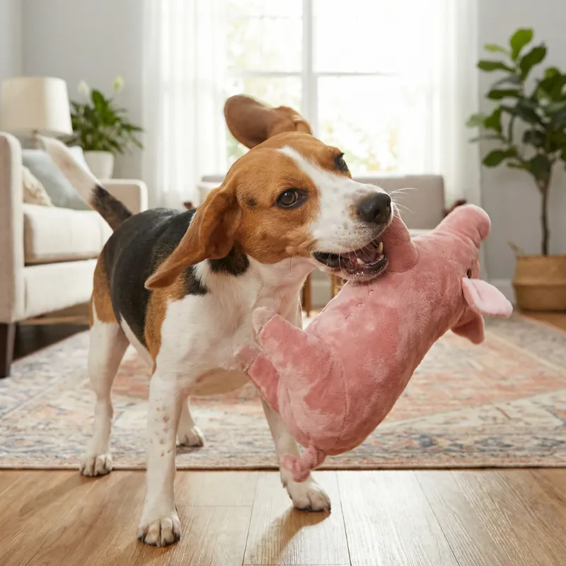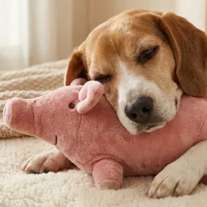 Mijn verlegen adoptiehond werd meteen warm van dit varkensspeeltje. Ze knuffelt ermee op de bank en knabbelt er zachtjes op, wat haar duidelijk helpt ontspannen.