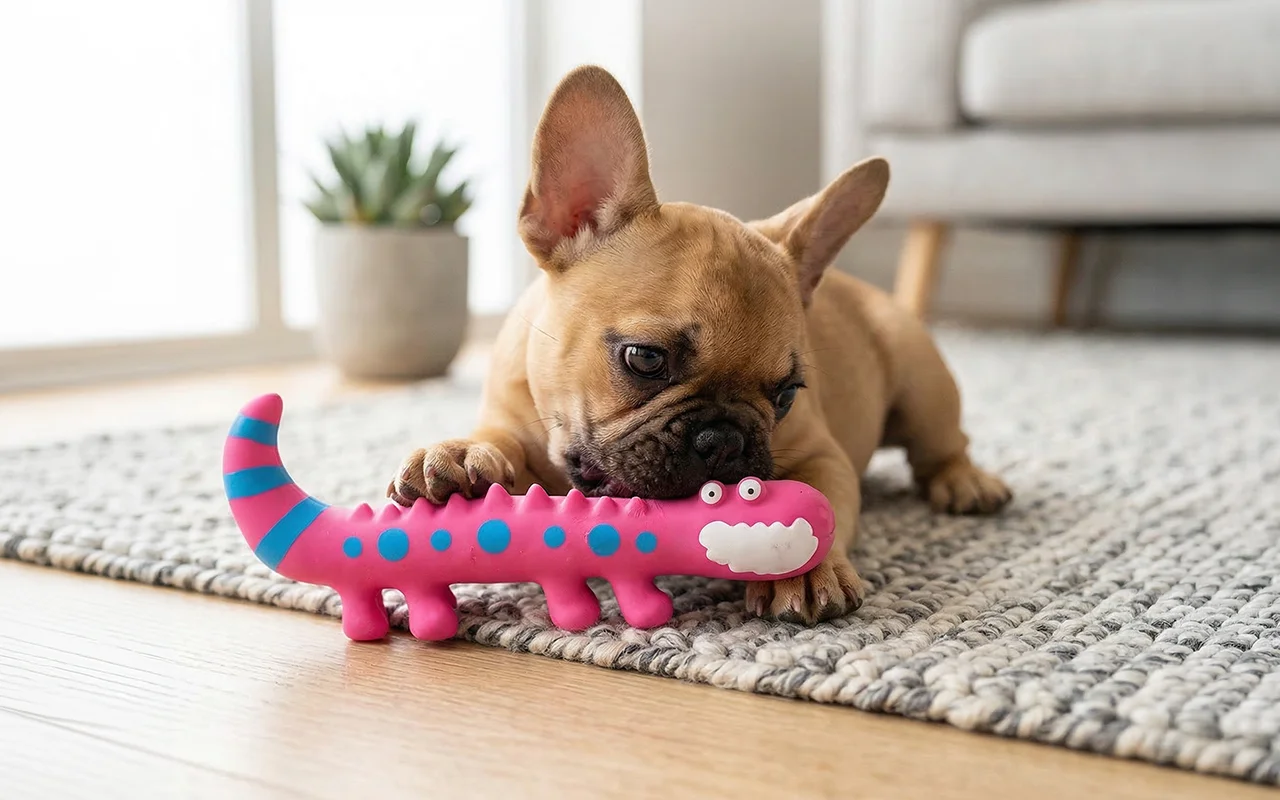 Ik kocht de hagedis-kauw voor de hond van mijn zus. Hij is meestal kieskeurig, maar nu sleept hij hem van kamer naar kamer, knabbelt er zachtjes op en kwispelt onafgebroken met zijn krullende staart.