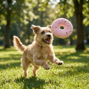 Mijn hond vindt het heerlijk om deze donut door de woonkamer te achtervolgen.