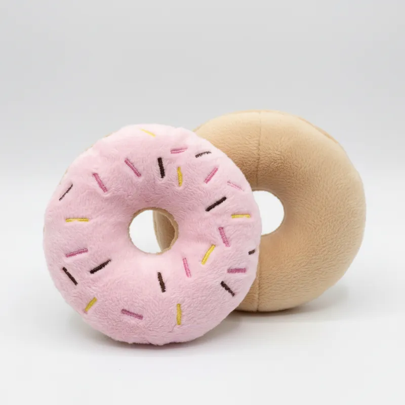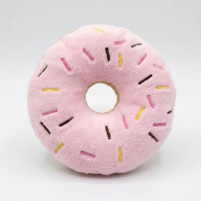 Schattig pluchen donut-hondenspeeltje met pieper