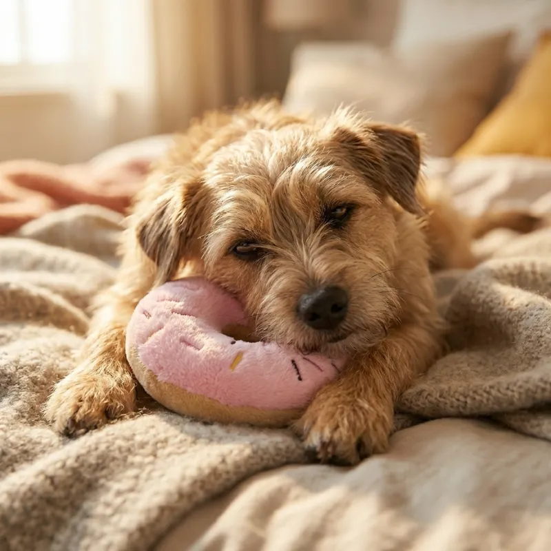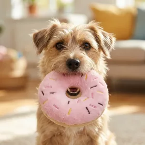 Onze kleine hond kauwde vroeger op schoenen, nu gaat ze direct voor deze donut. De zachte vulling lijkt zacht voor haar tandvlees, en ze speelt langer zonder zich te vervelen.