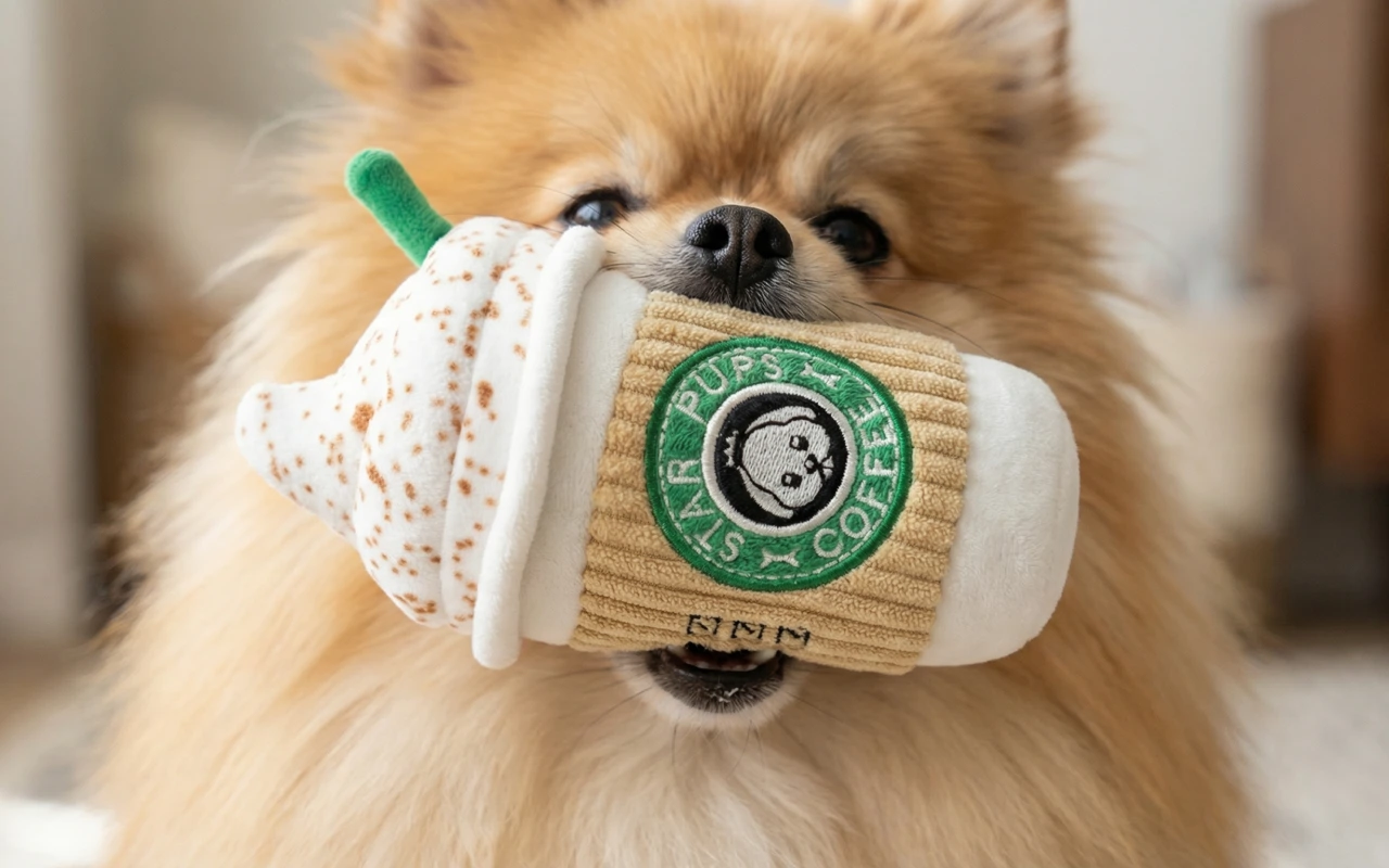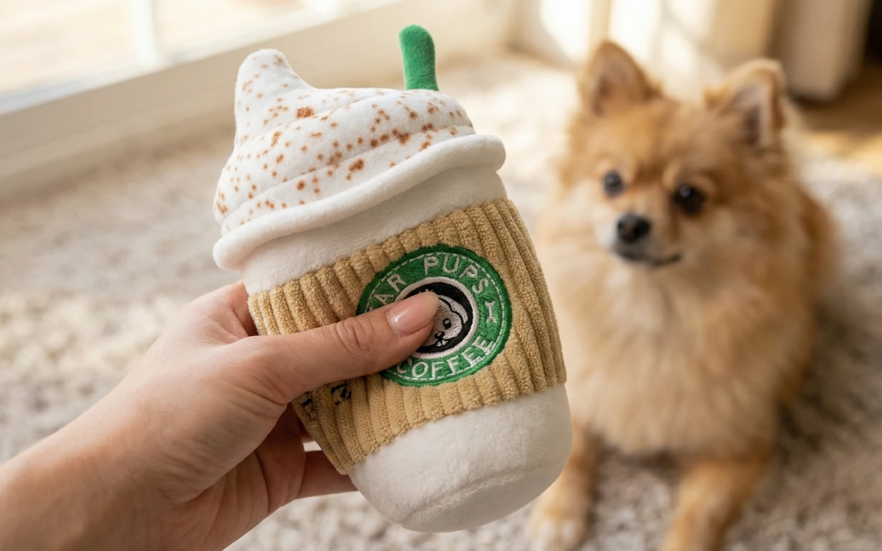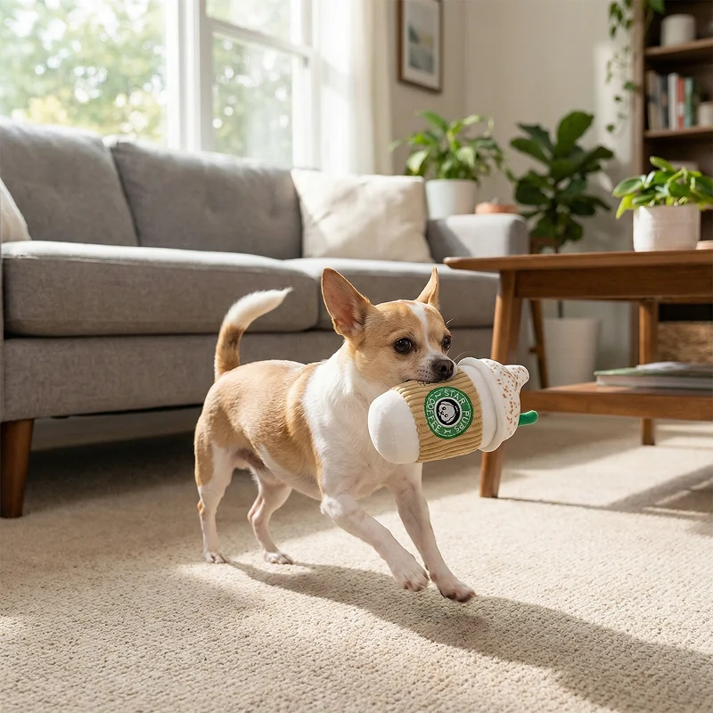 Schattig zacht fleece koffie beker piepend hondenkauwspeeltje