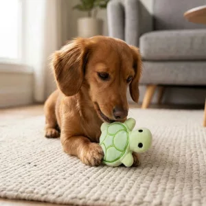 Honden zijn dol op zachte speeltjes die dagelijks helpen om pijnlijke tandvlees te verzachten. Primdog Turtle houdt puppies bezig terwijl kauwen binnenshuis veiliger wordt gemaakt. Heldere kleuren trekken nieuwsgierige huisdieren aan en stimuleren een gezonde, vrolijke speeltijd. De zachtheid beschermt kleine bekjes tegen harde materialen, waardoor de kans op ongemak afneemt.