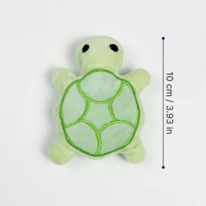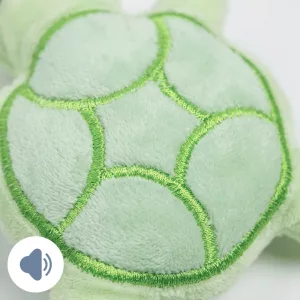 De schildpad gekocht voor de pup van mijn dochter. Hij knuffelt ermee in zijn bench en kauwt er zachtjes op voor het slapen. Het piepje werkt na weken nog steeds.