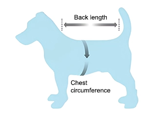 - 1. Meet de ruglengte van je huisdier van de basis van de nek tot aan de staart.