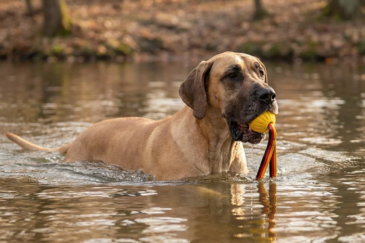 Dit speeltje gekocht omdat mijn hond dol is op water. Het blijft goed drijven, en het uit het zwembad halen vindt ze elke keer weer geweldig.