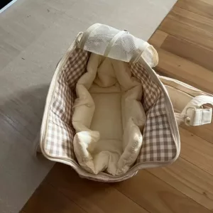Onze hondendrager heeft vakken voor huisdierenspullen, wat het praktisch maakt voor uitstapjes.