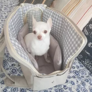 Mijn kleine hond is dol op deze tas! Ik heb hem geleerd hoe hij erin en eruit kan met wat traktaties. Ik kan hem nu mee naar winkels nemen zonder me zorgen te maken dat ik hem thuis moet laten. Aanbevolen!