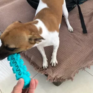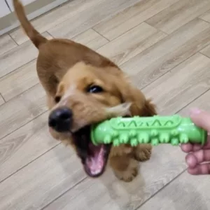 Ons kauwspeeltje reinigt de tanden van uw huisdier. Het bespaart u de moeite van handmatig tandenpoetsen. U kunt er wat tandpasta in doen voor een beter effect.