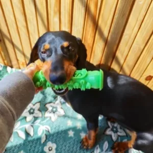 Dit speeltje is perfect voor mijn tandjes krijgen puppy, het biedt verlichting en bevordert gezonde kauwgewoonten. Ik ben erg onder de indruk van de effectiviteit! Dit speeltje gaat opmerkelijk lang mee. Dit is een zeer betrouwbare oplossing om de tanden van je pup schoon te houden en hun kauwdrang te bevredigen.