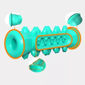 Ons kauwspeeltje reinigt de tanden van uw huisdier. Het bespaart u de moeite van handmatig tandenpoetsen. U kunt er wat tandpasta in doen voor een beter effect.