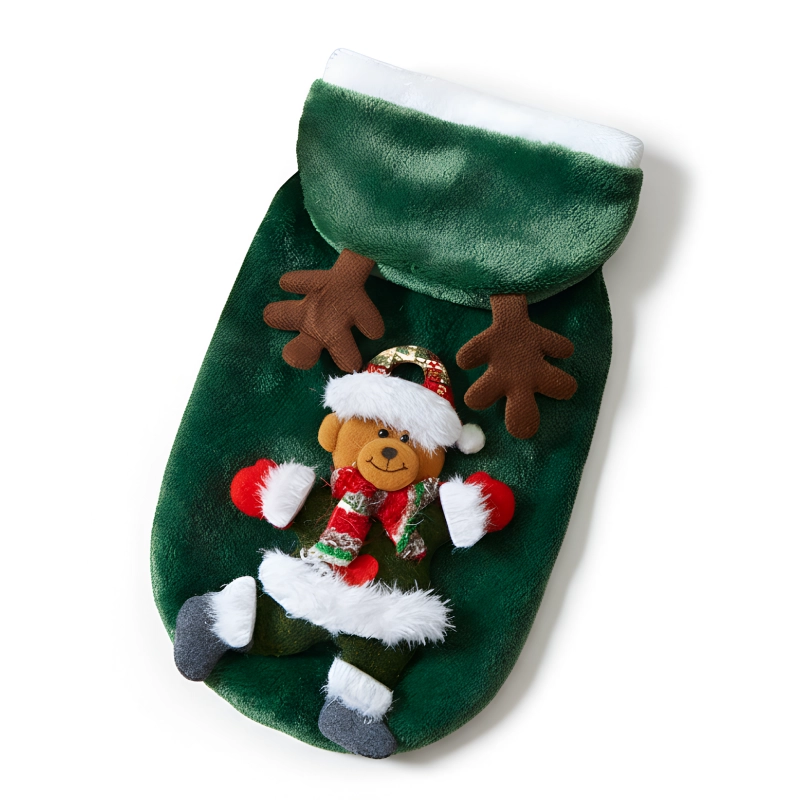 Mijn kinderen konden niet stoppen met giechelen toen ze onze hond in deze kerstkleding zagen. Super makkelijk uit te trekken na het spelen en hij bleef tevreden.