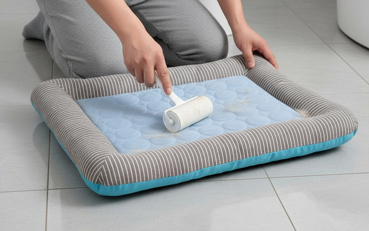 Mijn hond heeft een gevoelige huid en deze mat voelt zacht aan voor hem. Hij krult zich op en valt bijna meteen in slaap.