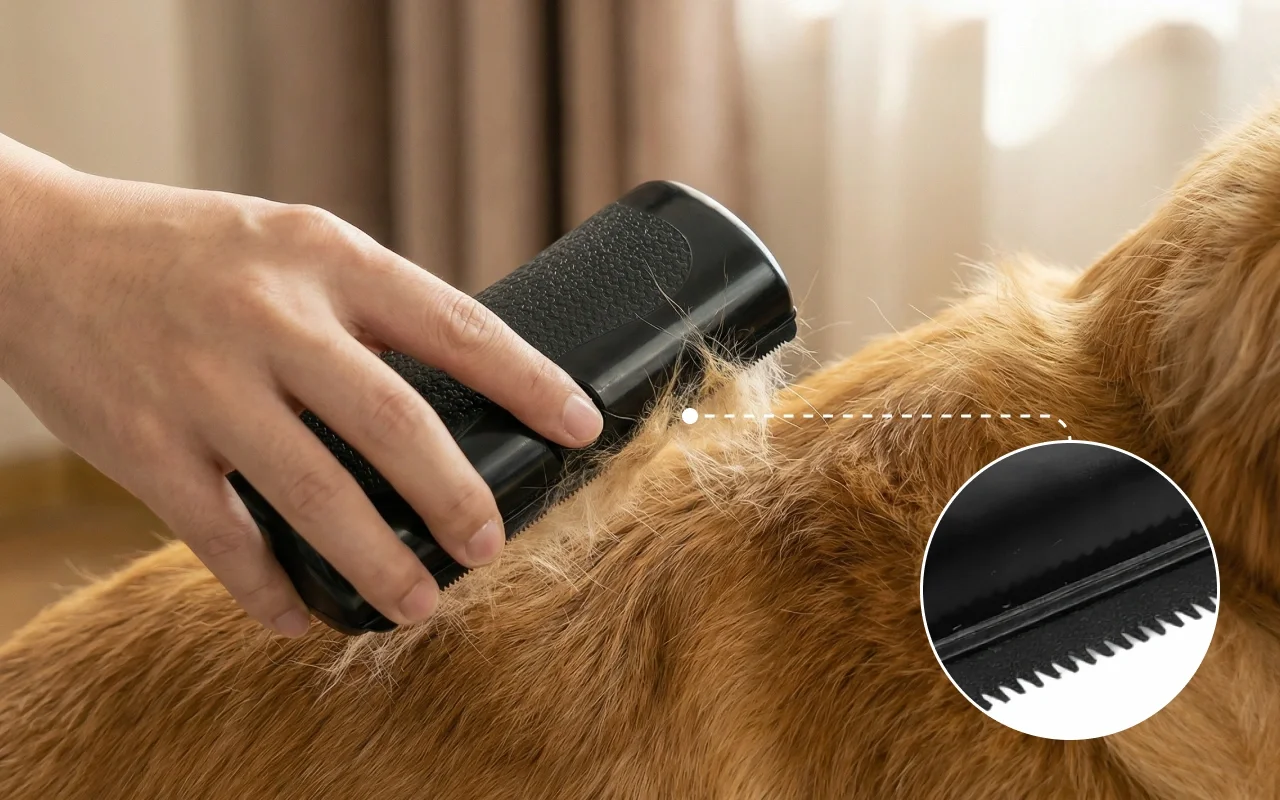 Losse haren worden moeiteloos verwijderd met Primdog's tool, elke keer weer. Je leefruimte blijft netter terwijl huisdieren zich elke dag comfortabel voelen.