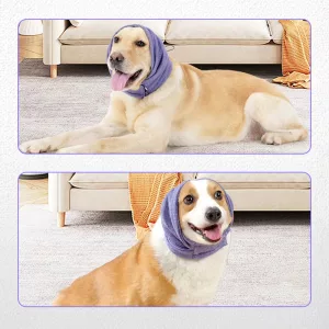 Mijn hond raakte altijd gestrest tijdens wandelingen langs luidruchtige bouwplaatsen. Met deze oorwrap loopt ze vrolijk verder. Het trekkoord houdt hem perfect op zijn plek.