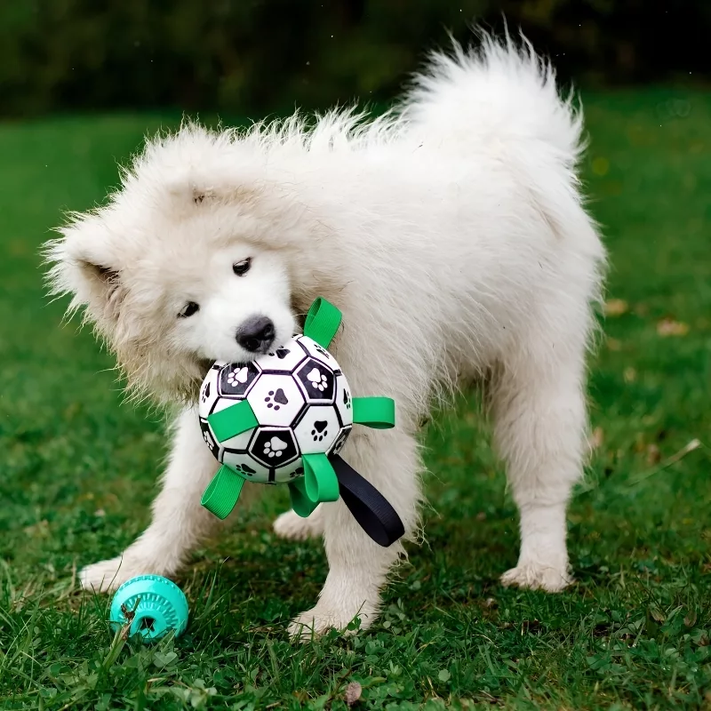 Dit voetbalspeelgoed leidt huisdieren af van kauwen op spullen en ander ongewenst gedrag. Het helpt om verveling, stress en angst bij je hond te verminderen.