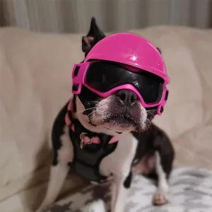 Deze helm hield de oren van mijn mopshond veilig tegen de wind. De bril helpt echt tegen zon en stof. Heel erg onder de indruk van hoe makkelijk het te verstellen is.