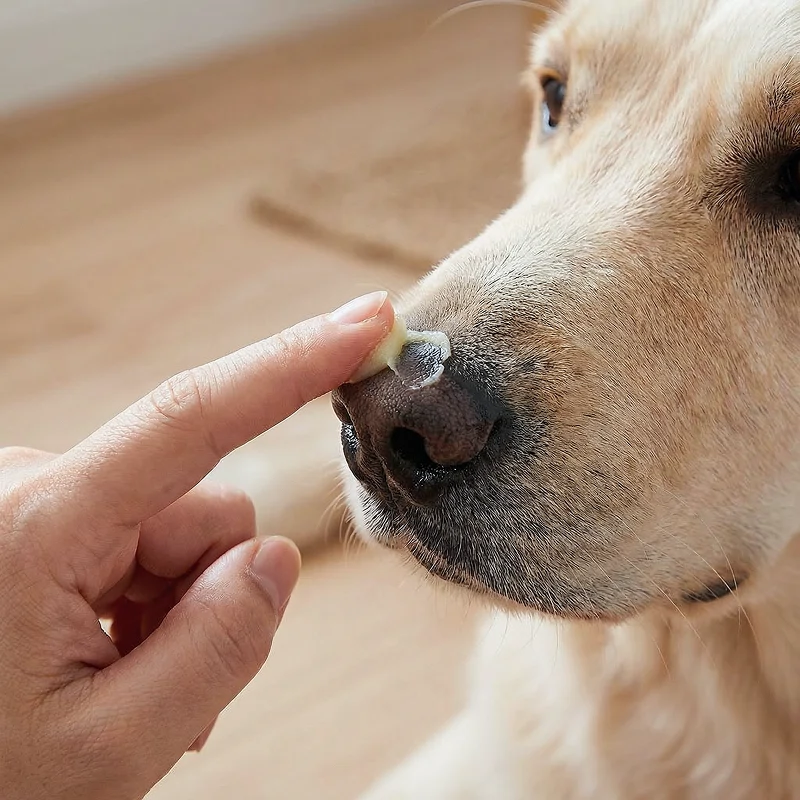 De neus van mijn beagle zag er eerst droog uit, nu is hij glanzend en zacht! Ik bewaar het bij de deur zodat ik het nooit vergeet te gebruiken.