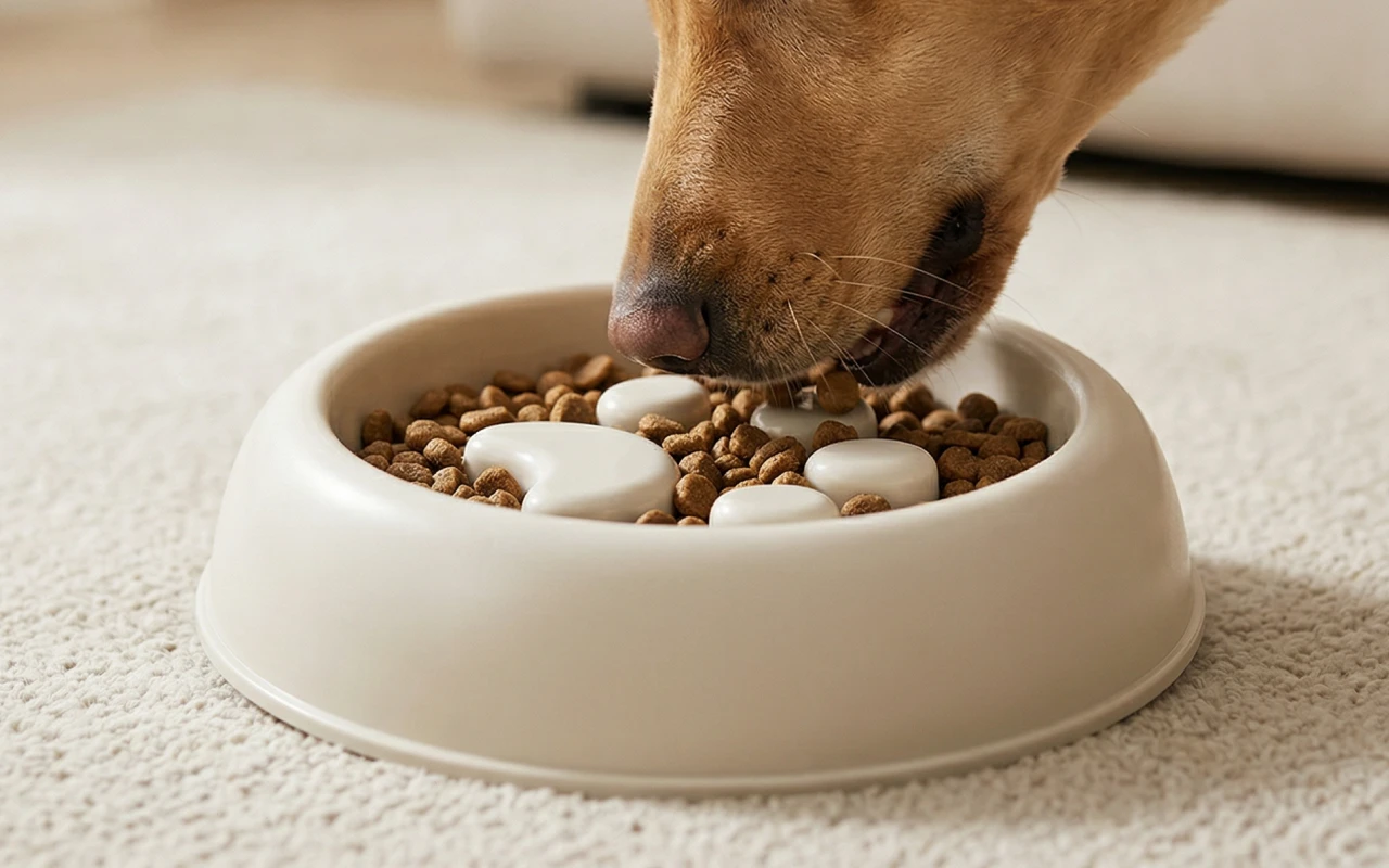 Langzamer eten helpt het voedsel voorzichtig af te breken in de buik van je huisdier. Geen last meer van opgeblazen buiken of winderigheid na het eten.