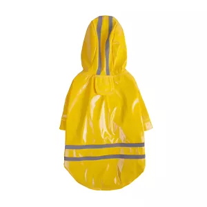 Onze regenjas is ideaal voor avondwandelingen in de regen. De reflecterende strepen maken je huisdier zichtbaar bij weinig licht.