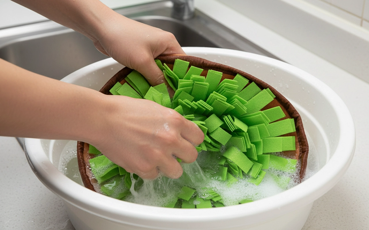 De Primdog Snuffelmat kan snel gewassen worden in elke standaard wasmachine. Hij droogt snel en blijft fris voor de volgende speelsessie.