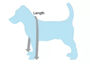 - 3. Trek het meetlint omhoog langs de voorpoot, over de schouder, over de rug en omlaag aan de andere kant.