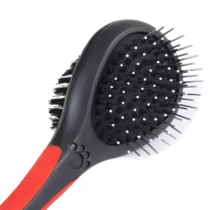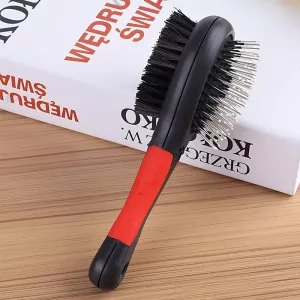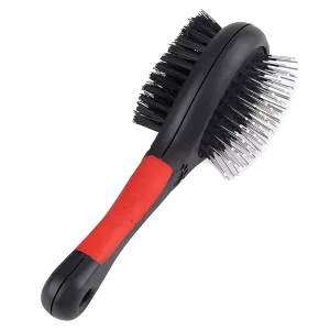 Best wel een goede borstel! Werkt prima op de vacht van mijn hond, hoewel hij iets comfortabeler in de hand had kunnen liggen. De dubbelzijdige functie is handig voor een grondige verzorging.