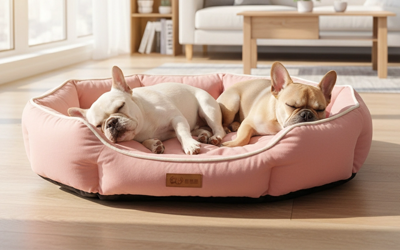 Onze hond is dol op zijn nieuwe katoenen bed. Vroeger sleepte hij zijn oude mat rond, maar nu ligt hij de hele dag ontspannen in deze.
