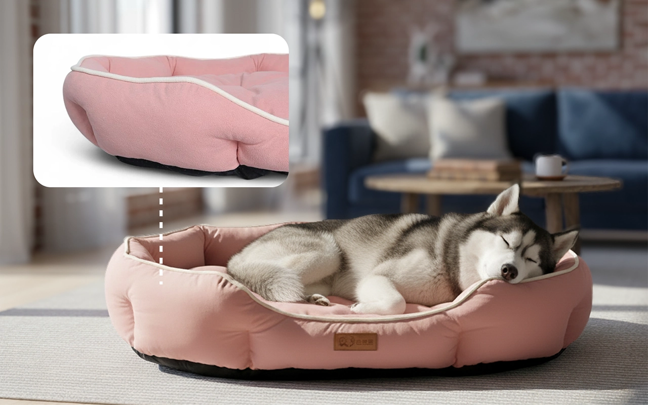 Opstaande randen bieden bescherming tegen tocht en lawaai. Honden kruipen erin en voelen zich beschermd tegen stress of onrust.
