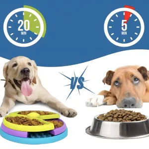 Mijn hond eet langzamer en lijkt echt te genieten van het zoeken naar zijn voer in deze voerbak. Schoonmaken is makkelijk en het voer valt niet overal op de grond.
