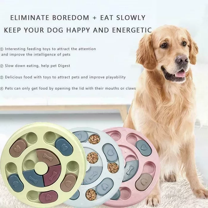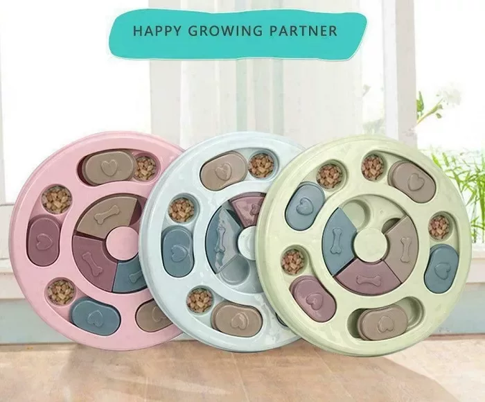 Het is verkrijgbaar in 3 vormen: in de vorm van een poot, een hexagoon en een ronde vorm. Afhankelijk van je keuze zijn er 6 tot 9 schuifblokjes om traktaties uit de openingen te onthullen. Je hoeft alleen kleine traktaties in het schuifpuzzel speelgoed te verstoppen en je huisdier zal een manier vinden om ze te pakken. In het begin kun je je huisdier helpen zijn hersenen te stimuleren. Geleidelijk zal hij leren het zonder jou te doen. Vergeet niet je hond te belonen als hij de opdracht kan voltooien. Het interactieve speelgoed is ontworpen in levendige kleuren binnen het spectrum van het zicht van je hond: roze, blauw en groen. Deze kleurenvariatie zal zeker de aandacht van je huisdier trekken.